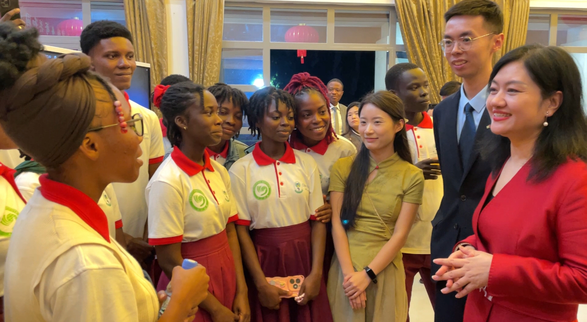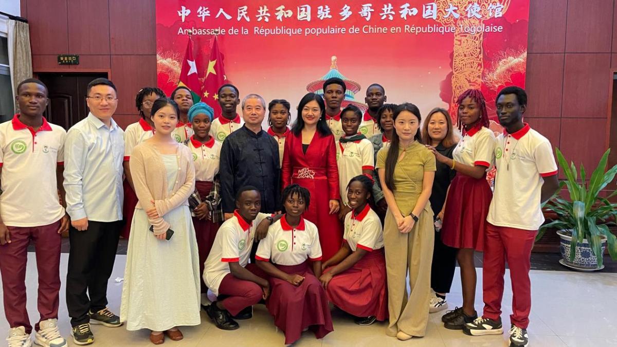 Profesores y estudiantes del Instituto Confucio de la Universidad de Lomé muestran la cultura china en el recibimiento de la Embajada de China en Togo