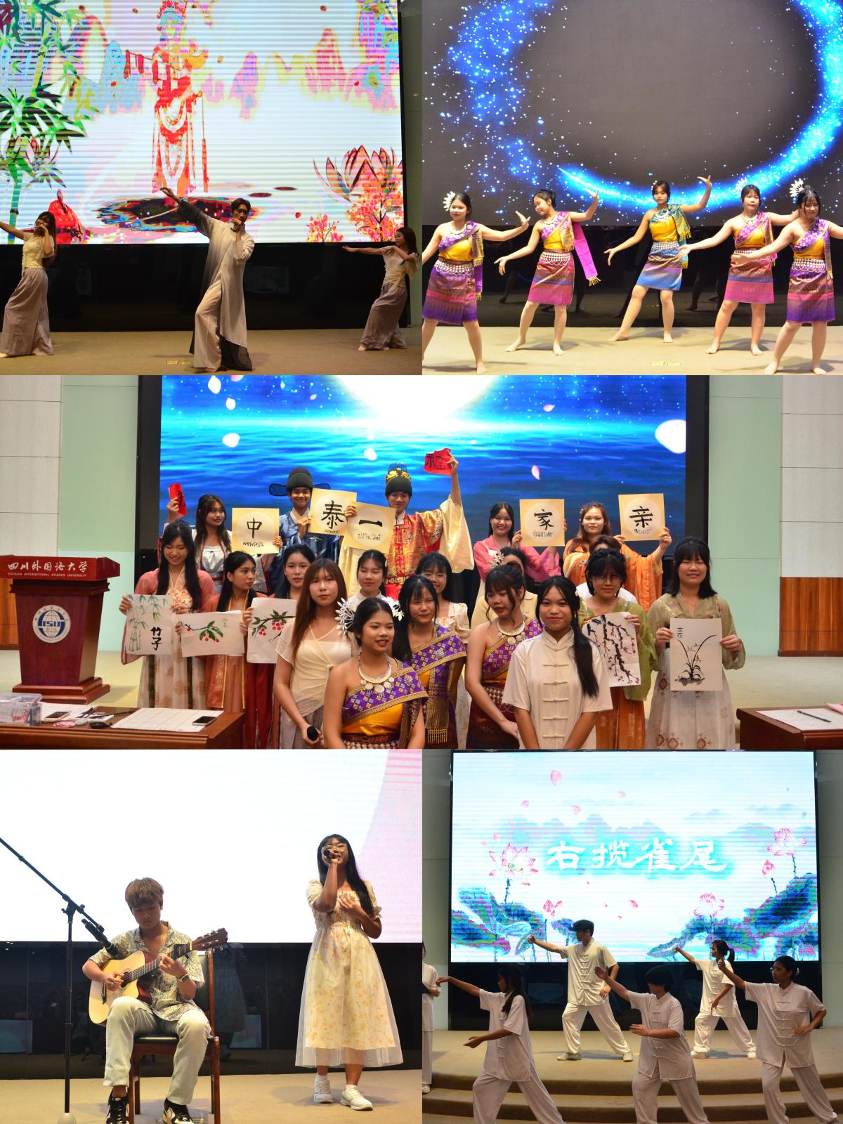 En el acto académico, los estudiantes tailandeses demostraron con entusiasmo los logros alcanzados durante el programa: una actuación de taijiquan que combinaba fuerza y suavidad, una mezcla de danzas chinas y tailandesas que destacaron por su gracia y elegancia, además de interpretaciones de canciones folclóricas y caligrafía china, que pusieron en evidencia su profunda comprensión y sincero amor por la cultura china.